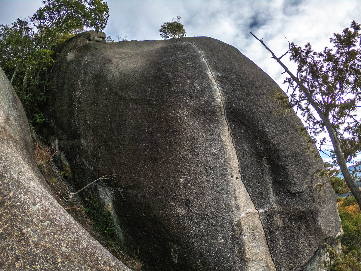 その後、大岩から桃岩方面に下りた所にあるハンドクラックのティータイム(5.8)をTRでTO。クラック下のテラスに上がる一段だけがむずい。クラックはジャムるよりレイバックの方がサクサク登れる。